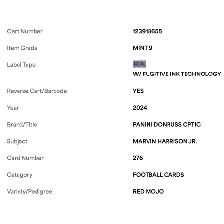 Marvin Harrison Jr PSA 9 2024 Panini Donruss Optic Red Mojo Card #276
