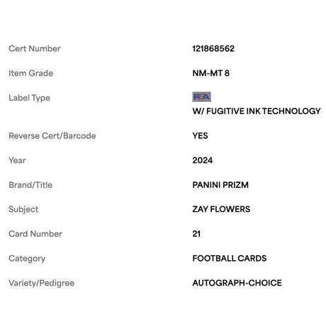 Zay Flowers PSA 8 2024 Panini Prizm Autograph Choice #d/ 100 Card #21