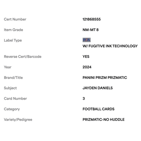 Jayden Daniels PSA 8 2024 Panini Prizm Prizmatic No Huddle Card #3