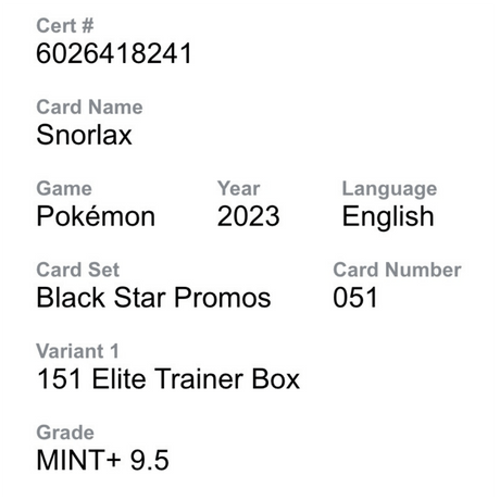 Snorlax CGC 9.5 2023 Pokemon Black Star Promos Card #051