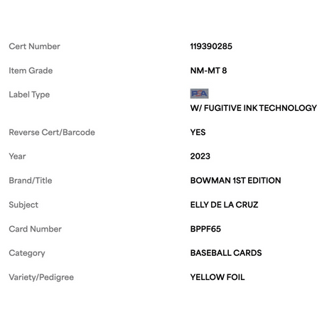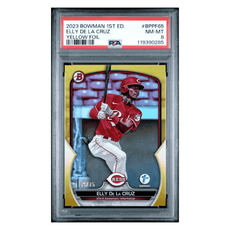 Elly De La Cruz PSA 8 2023 Topps Bowman 1st Edition Yellow Foil #d /75 Card #BPPF65