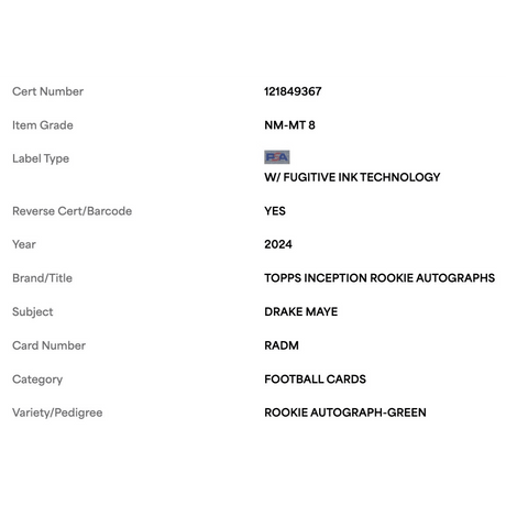 Drake Maye PSA 8 2024 Topps Inception Rookie Autograph Green #d/150 Card #RADM