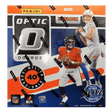 Panini presents the 2021 NFL Donruss Optic Football Trading Card Mega Box. Each box contains 10 packs with 4 cards per pack. Find 3 Mega Box Exclusive Rated Rookies Blue Hyper Parallels per box, on average! Find 1 Memorabilia Card per box, on average! Look for the Ultra Rare Downtown!