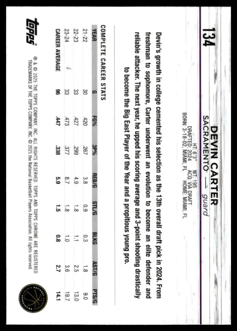 2024-25 Topps Chrome - Devin Carter Blue Basketball Refractor - Basketball #134