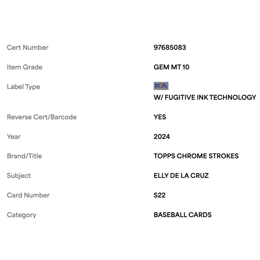 Elly De La Cruz PSA 10 2024 Topps Chrome Strokes Rookie RC Card #S22
