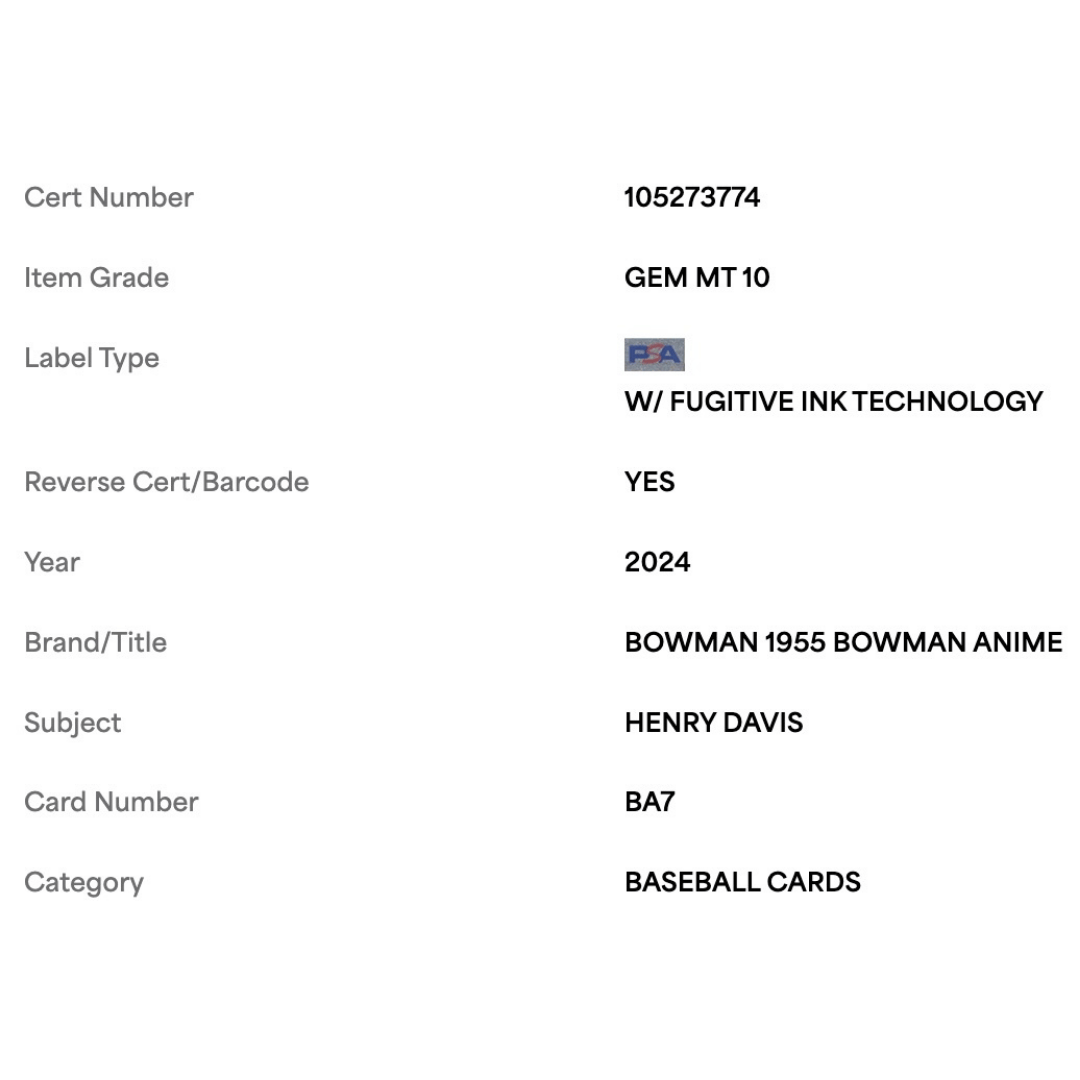 Henry Davis PSA 10 2024 Topps Bowman 1955 Bowman Anime Rookie RC Card #BA7
