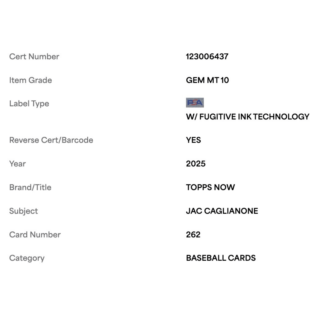 Jac Caglianone PSA 10 2025 Topps Now Card #262