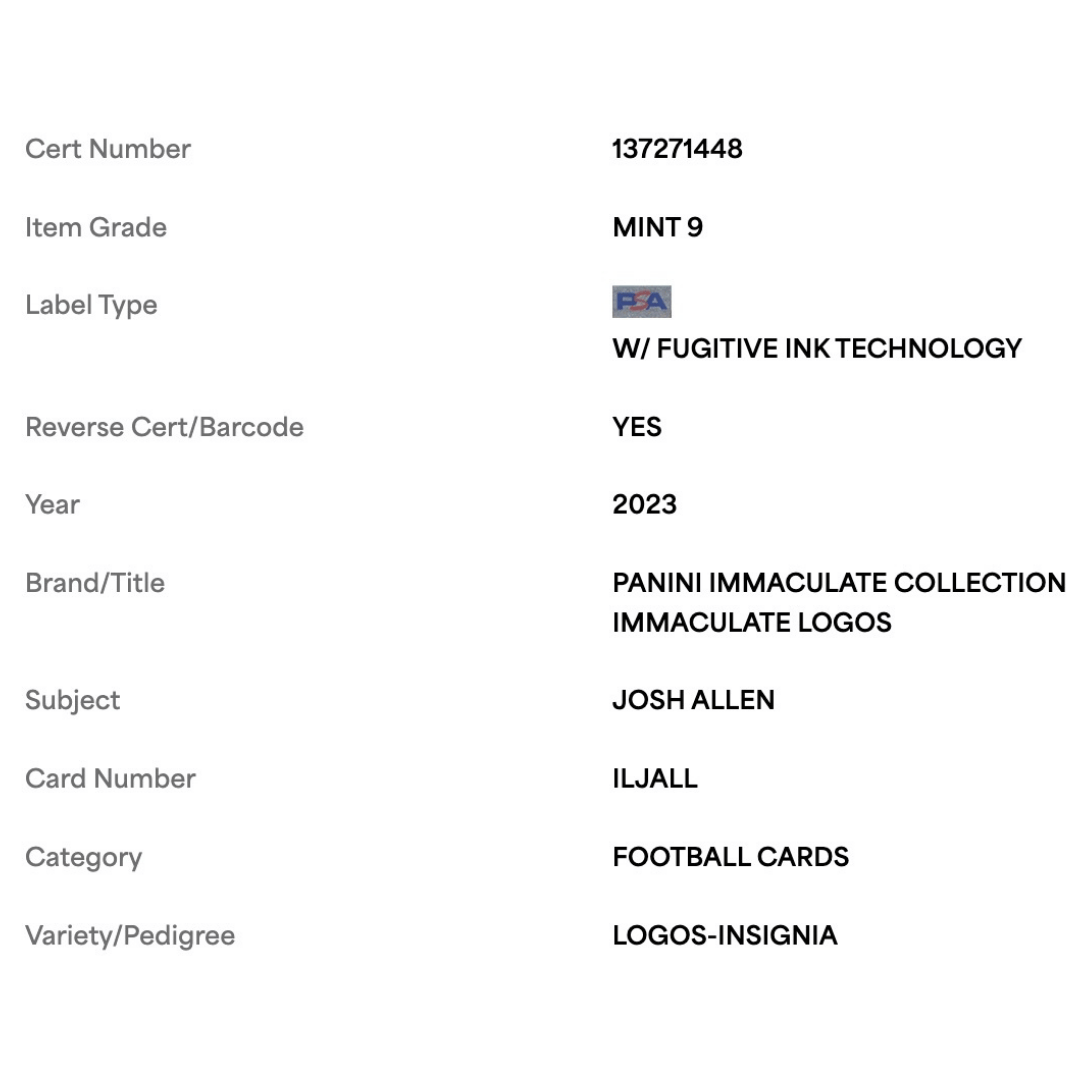 Josh Allen PSA 9 2023 Panini Immaculate Logos Insignia #d/ 5 Card #ILJALL