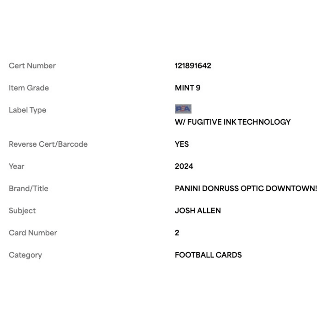 Josh Allen PSA 9 2024 Panini Donruss Optic Downtown! Card #2