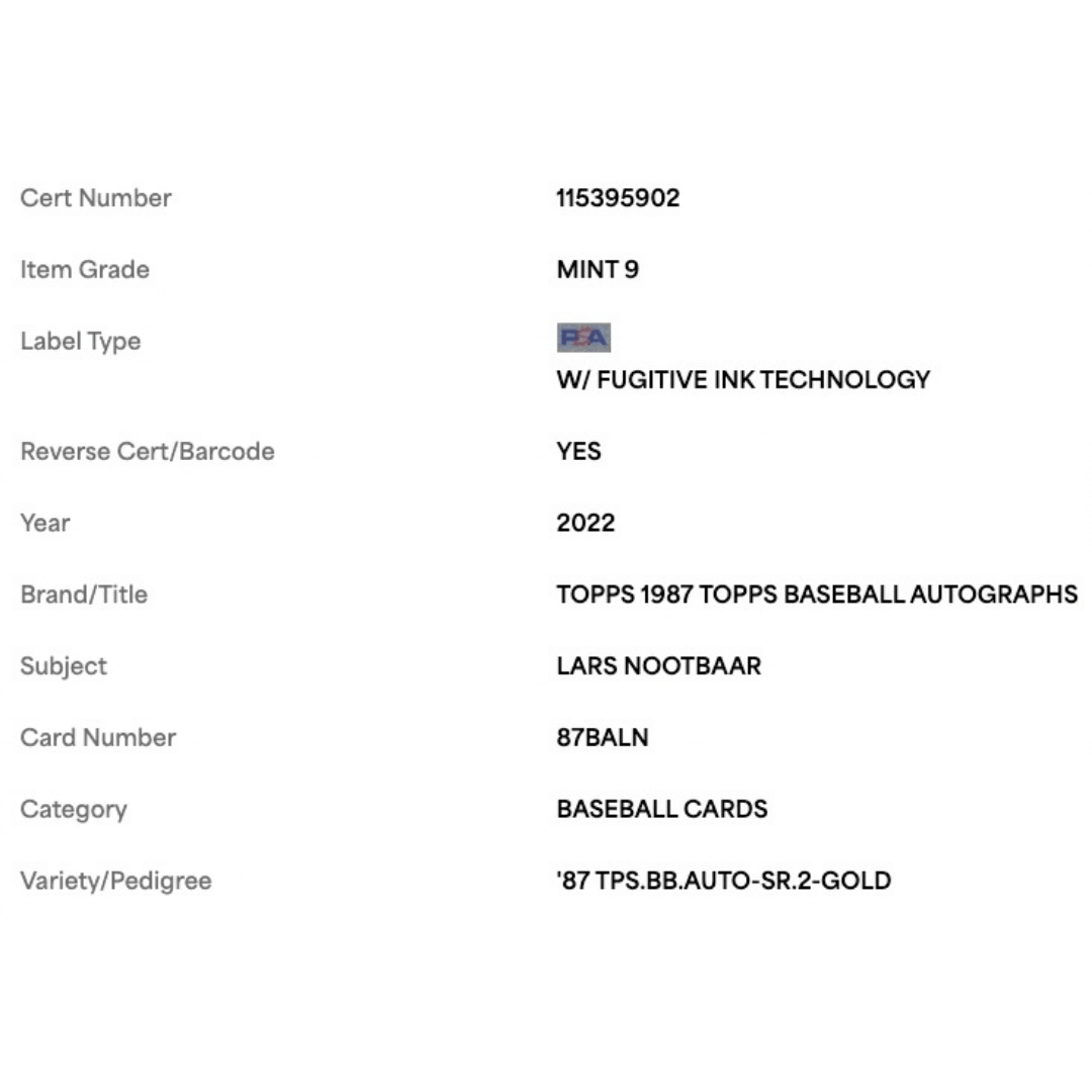 Lars Nootbaar PSA 9 2022 Topps '87 Topps Certified Autograph Issue Rookie RC #d/ 50 Card #87BALN