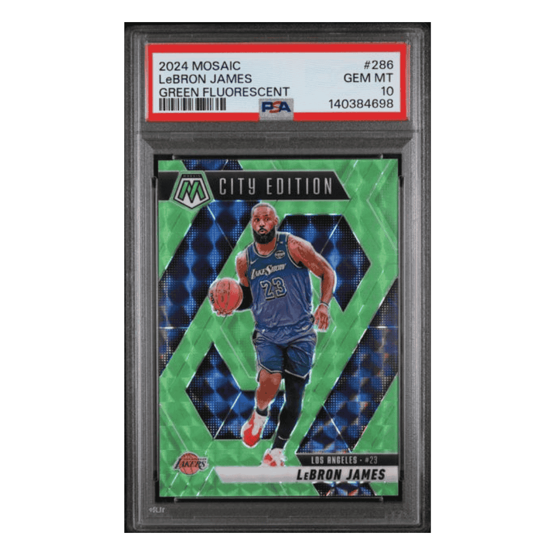 LeBron James PSA 10 2024 Panini Mosaic Green Fluorescent #d/ 10 Card #286