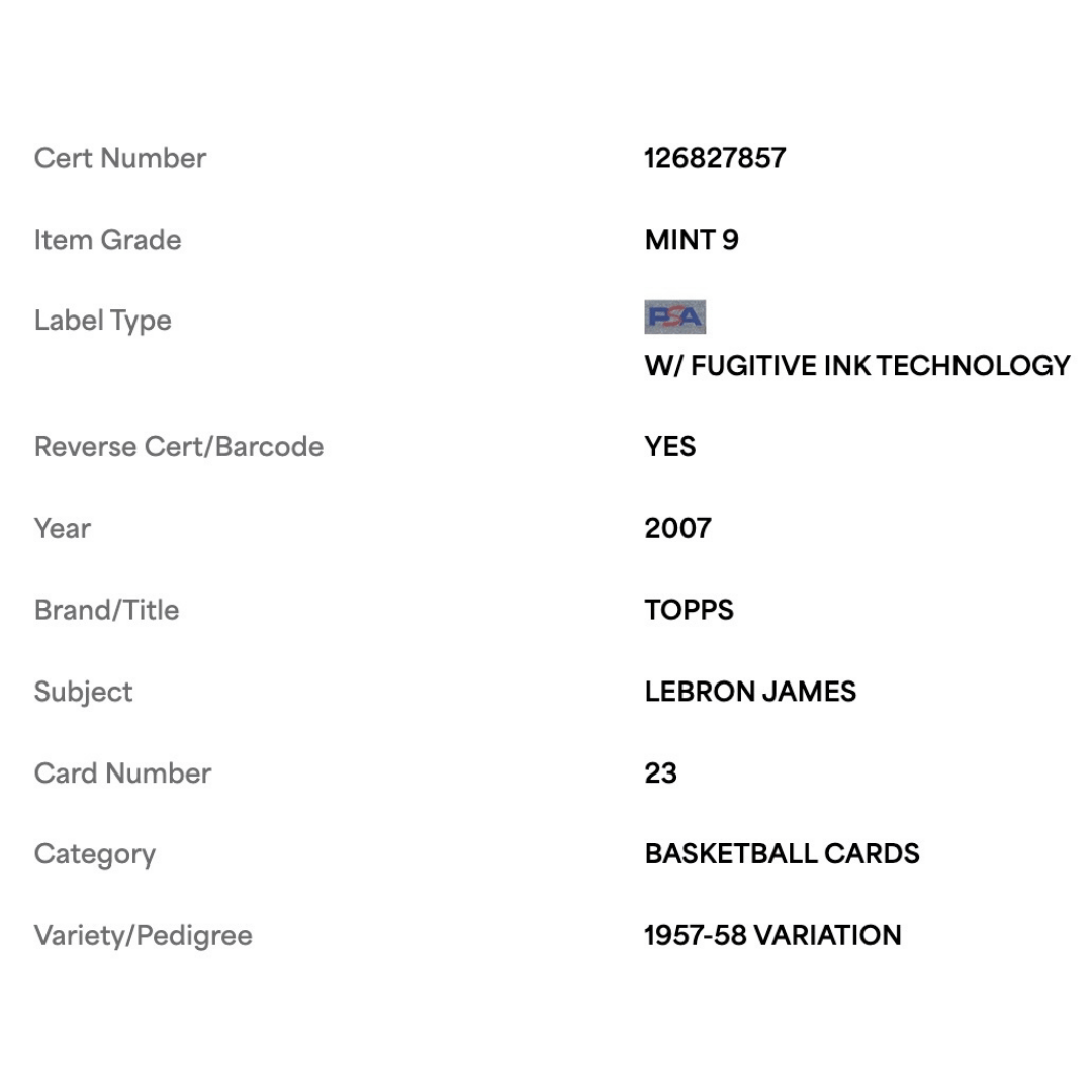 LeBron James PSA 9 2007 Topps 1957-58 Variation Card #23