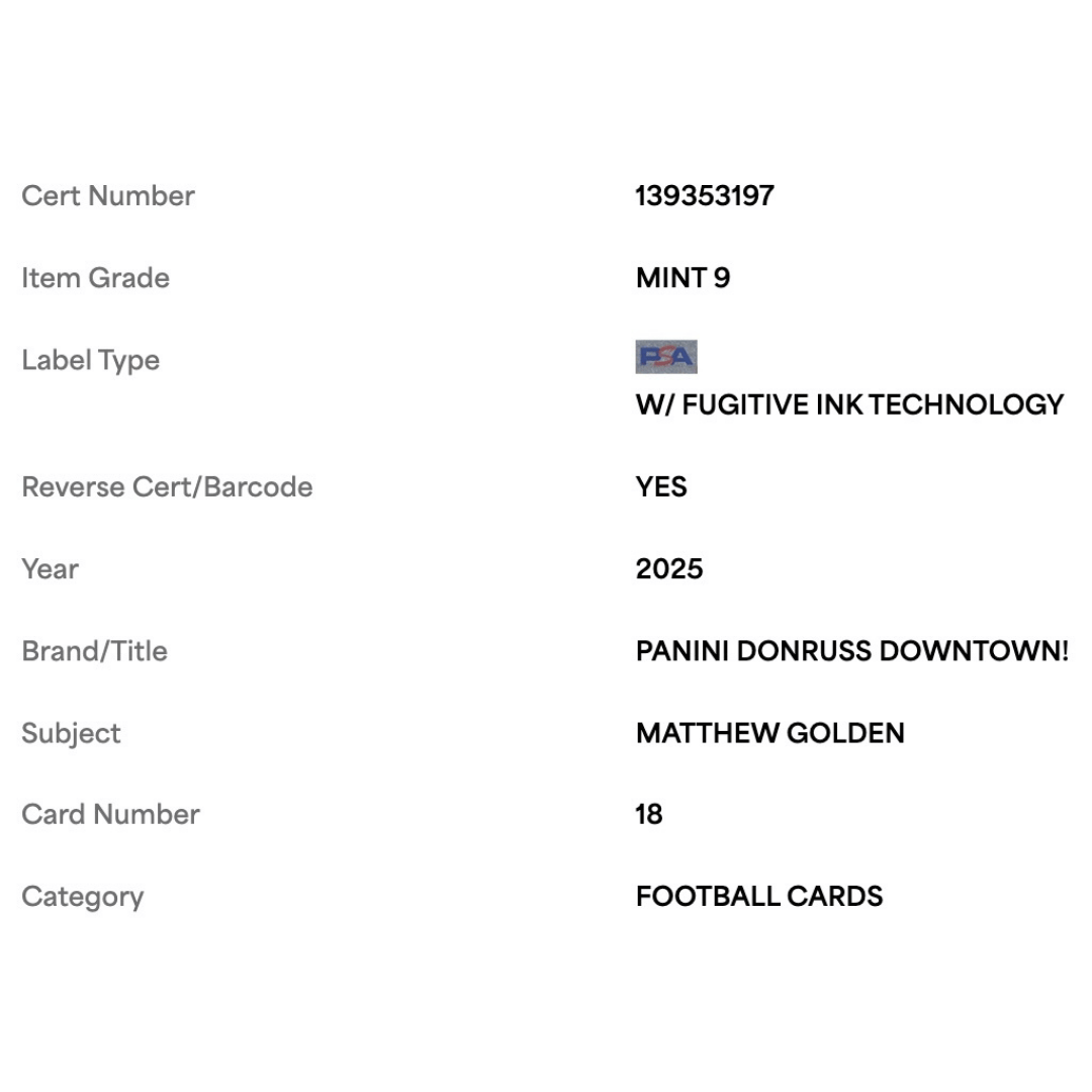 For avid football collectors and fans of Matthew Golden this 2025 Panini Donruss Downtown! Rookie RC Card #18 in PSA 9 condition is an absolute gem! This pristine piece is a must-have addition to any sports card collection.