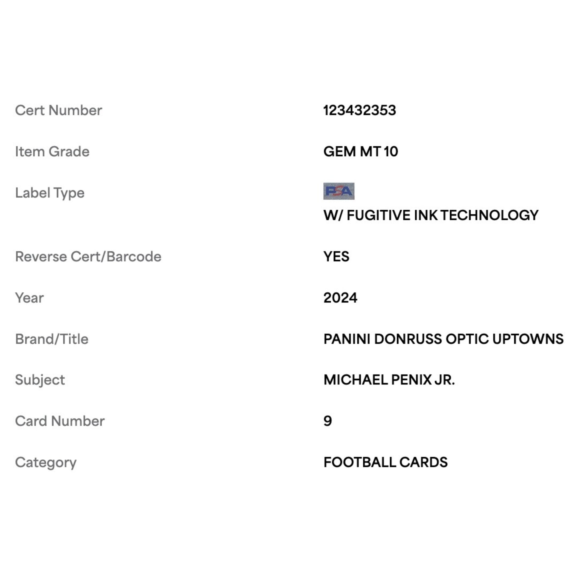Michael Penix Jr PSA 10 2024 Panini Donruss Optic Uptowns Rookie RC Card #9