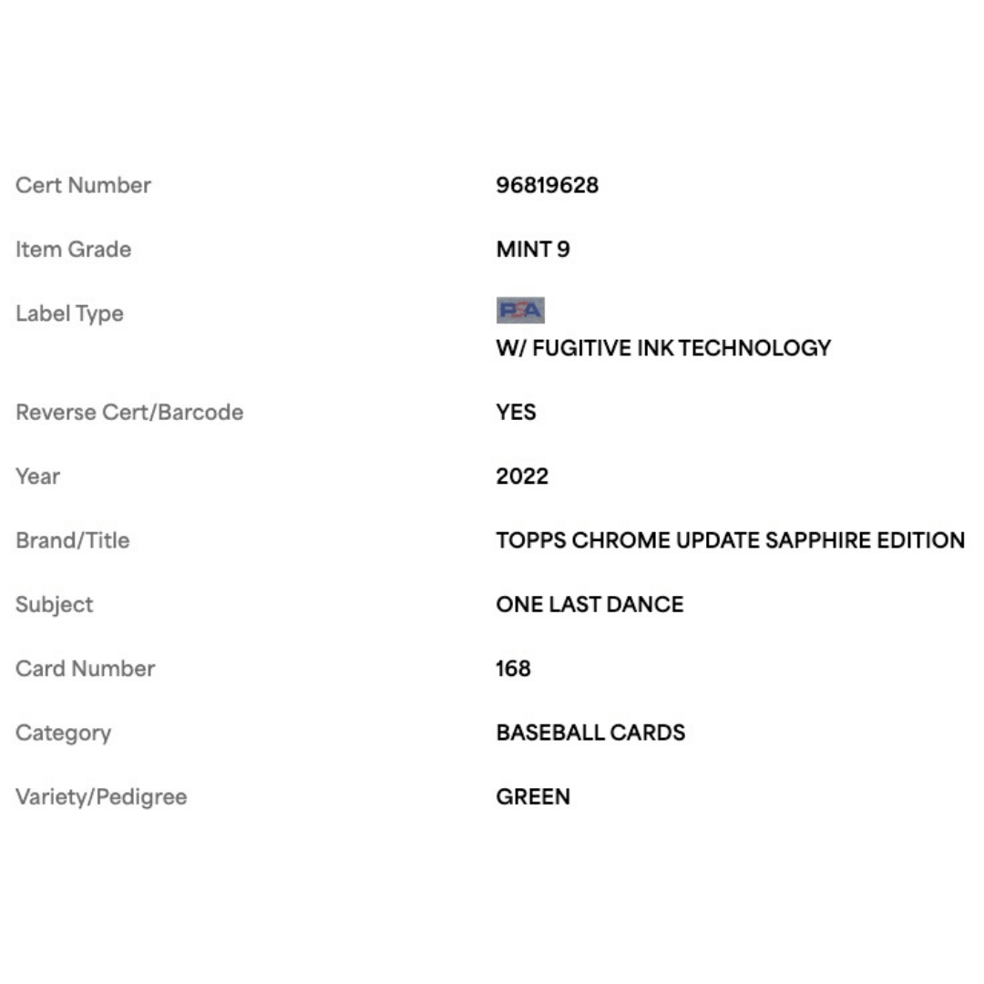 One Last Dance PSA 9 2022 Topps Chrome Update Sapphire Edition Green #d/ 75 Card #168