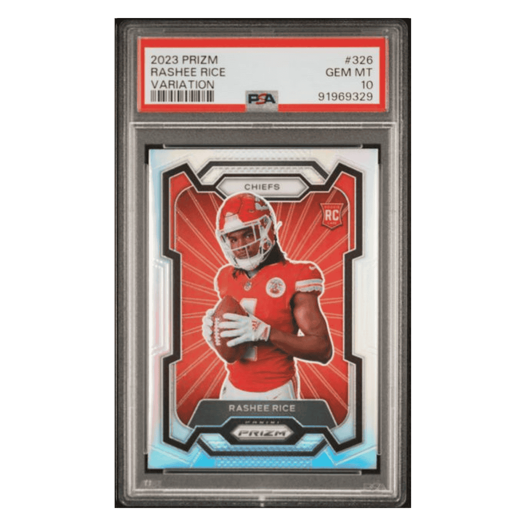 For avid football collectors and fans of Rashee Rice this 2023 Panini Prizm Variation Rookie RC Card #326 in PSA 10 condition is an absolute gem! This pristine piece is a must-have addition to any sports card collection.