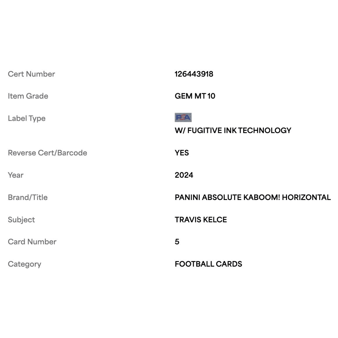 Travis Kelce PSA 10 2024 Panini Absolute Kaboom! Horizontal Card #5