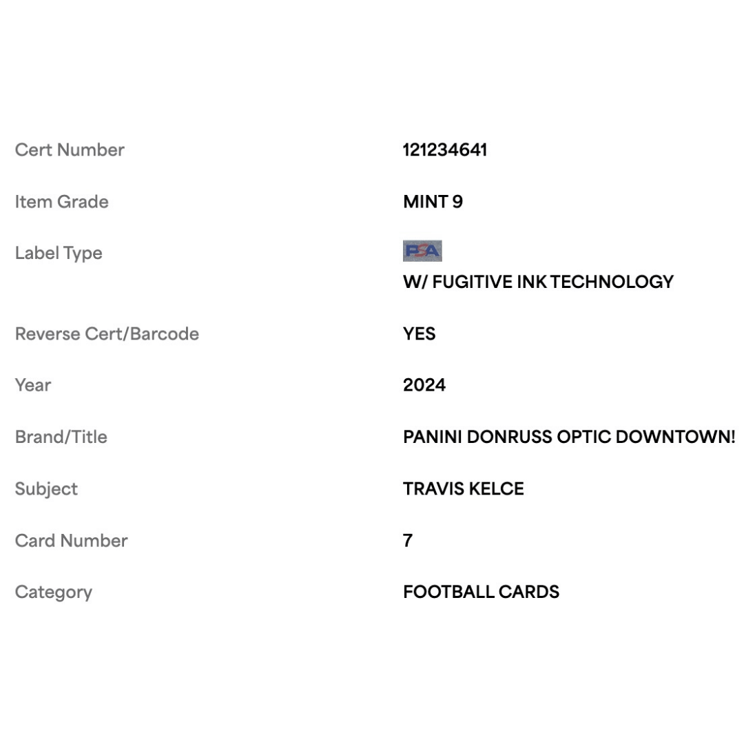 For avid football collectors and fans of Travis Kelce this 2024 Panini Donruss Optic Downtown! Card #7 in PSA 9 condition is an absolute gem! This pristine piece is a must-have addition to any sports card collection.