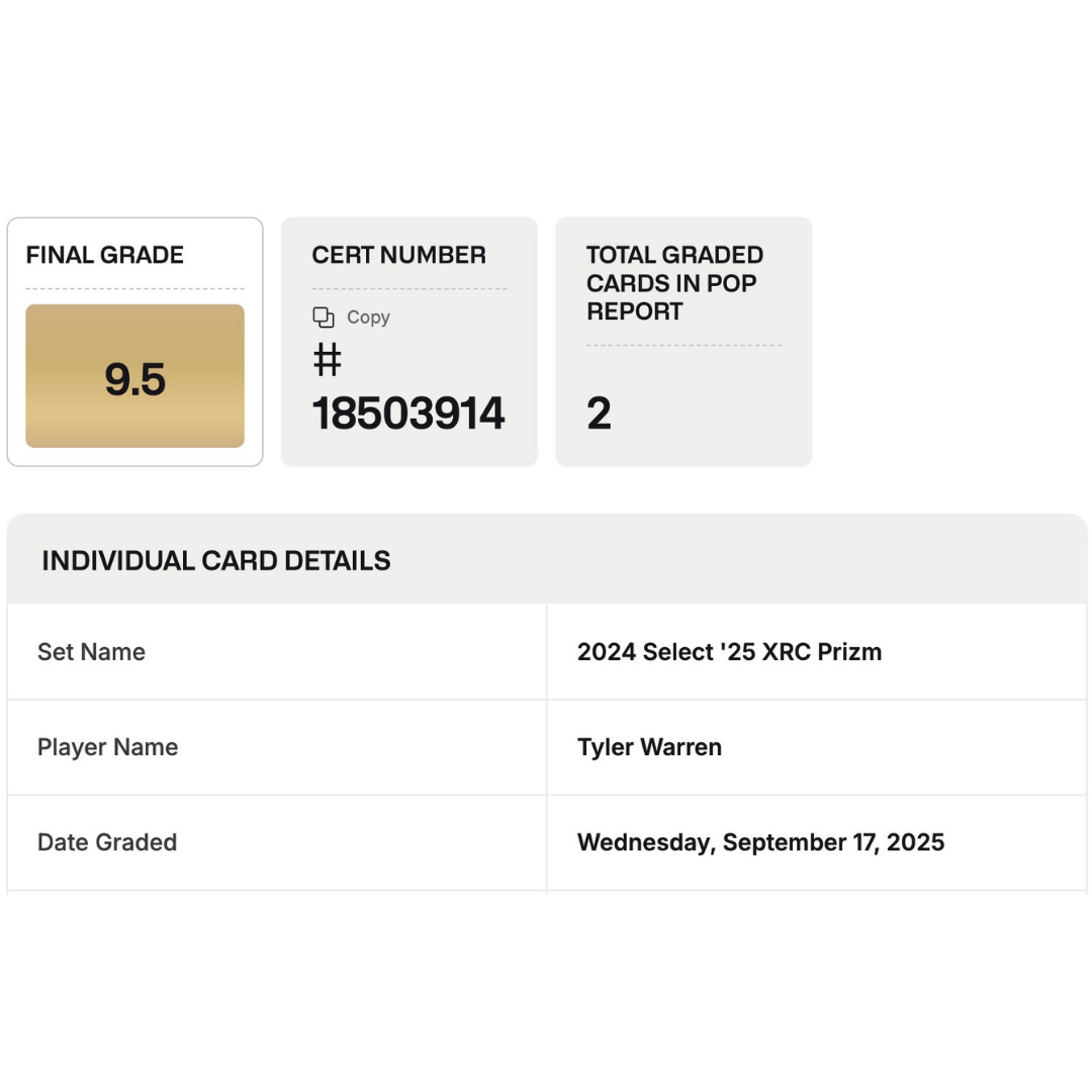 Tyler Warren BGS 9.5 2024 Panini Select '25 XRC Prizm Card #517